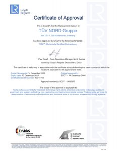 GWQ ist als Prüflabor nach DIN EN ISO/IEC 17025:2018 akkreditiert. Für unsere Tätigkeit in chemischen und petrochemischen Anlagen können wir das SCC** Sicherheits-Certifikat-Contraktoren vorweisen. Des Weiteren können wir die Zulassung nach KTA 1401 zur Tätigkeit im Bereich kerntechnischer Anlagen kurzfristig beantragen. Unser Prüfpersonal ist nach DIN EN ISO 9712 und nach ASNT Richtlinien zertifiziert.